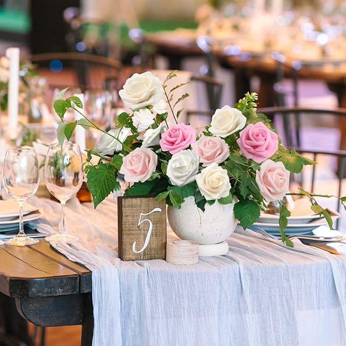 - [ QUALITY MATERIAL ] -- These artificial roses are made of high quality soft latex foam. It's durable, No smelly, No fade, No misshapen, No spotted and the color of the flowers are vivid and uniform, look and feel like real roses.