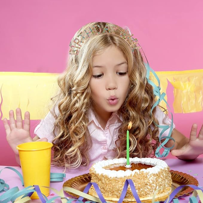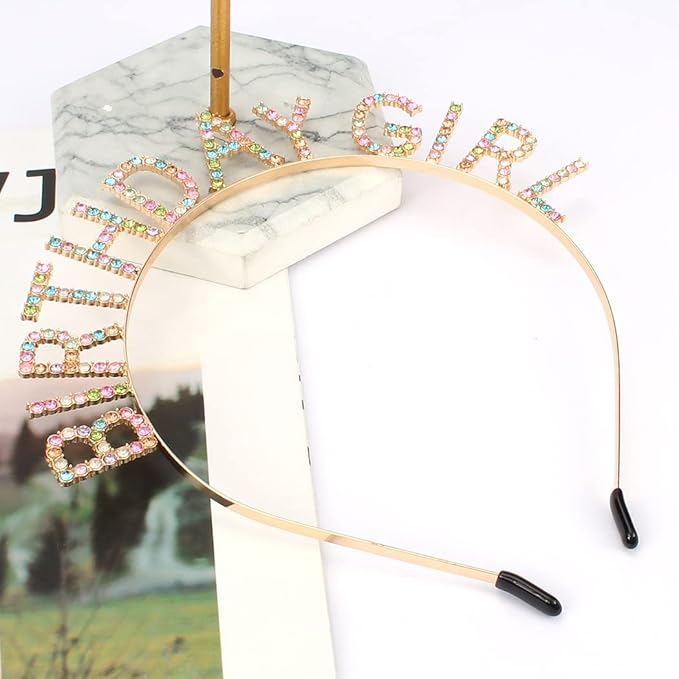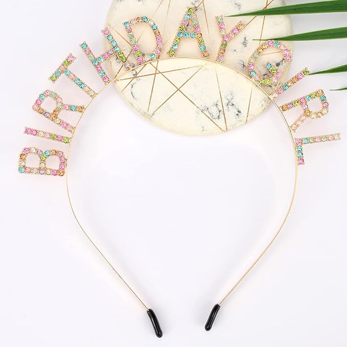 AOPRIE Birthday Girl Headband Tiara for Women & Girls - Happy Birthday Princess Crown Rhinestone Accessory, Gold Colorful