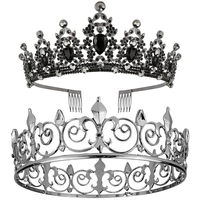 AOPRIE King & Queen Artemis Tiara and Crown for Women Men Crystal Hair Accessories for Wedding Prom Bridal Birthday Party Halloween Costume Christmas Gifts Black Princess Tiara for Girls Boys