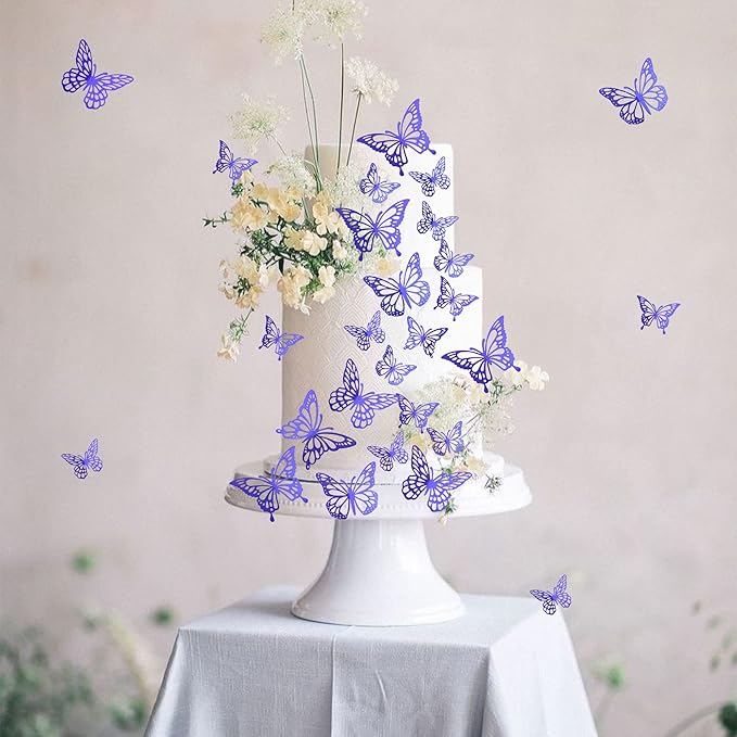 40 PCS Laser 3D Butterfly Cupcake Toppers - Hollow Arts Cake Decorations for Baby Shower, Wedding, Fairy Birthday Party Supplies - Wall Sticker Decoration Mixed Styles Dark Blue