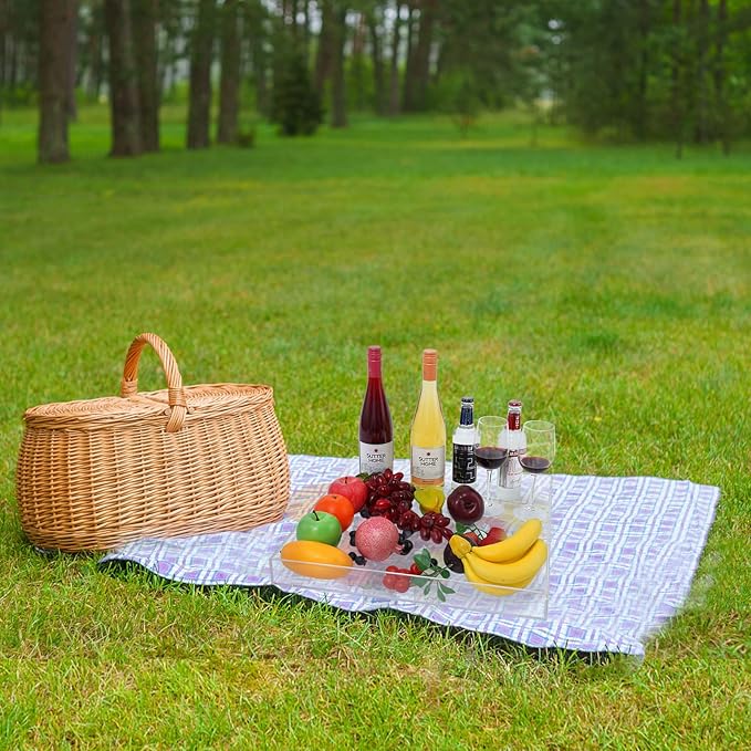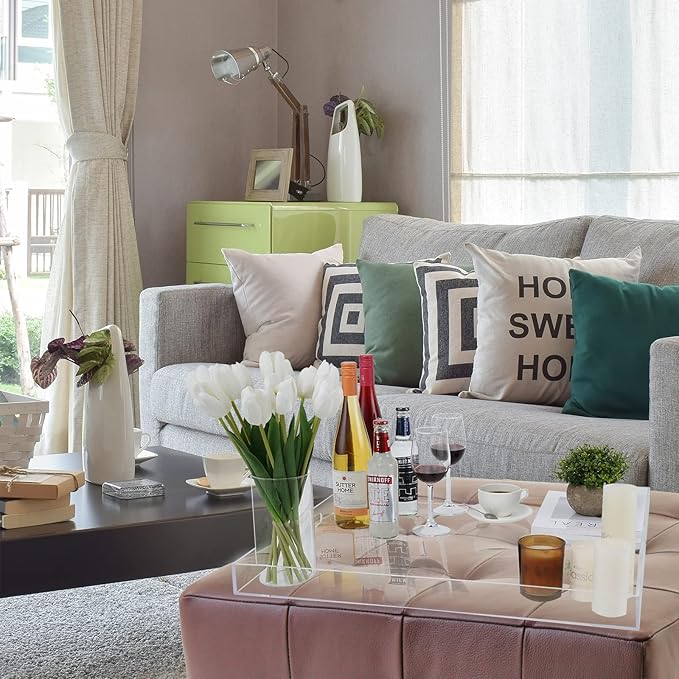 - Material: Our serving trays with handles are made of glossy white acrylic, Which is high quality and sturdy, The acrylic is a environment friendly material, Our square extra large acrylic trays are perfect ottoman trays for living room
