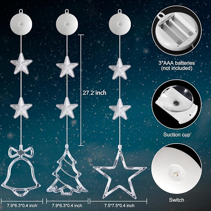 - đăCHRISTMAS WINDOW Lightedă:The bell/tree/star shaped Xmas window silhouette lights with suction cup, total 60 warm white LED bulbs, no harm to wall, You can place the lighted Christmas window lights ornaments wherever you want to brighten your Christmas night for your family.