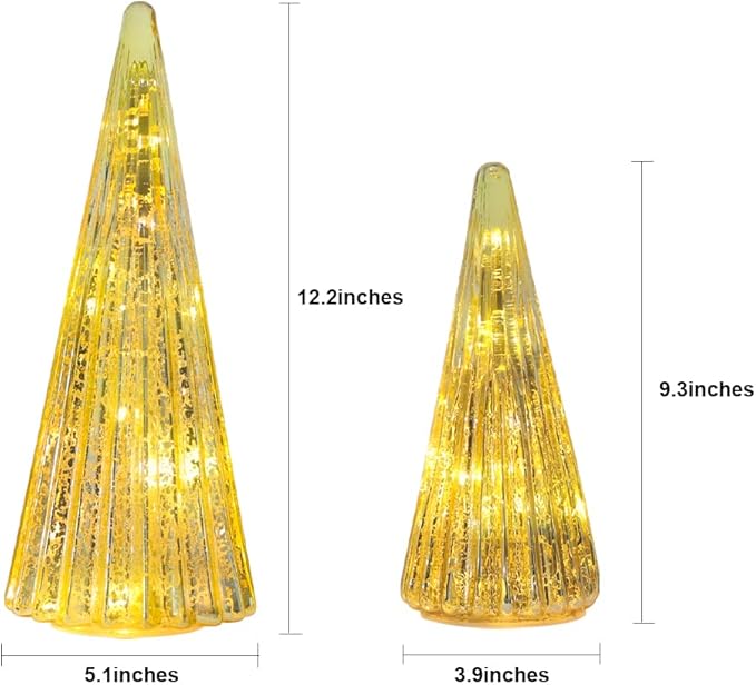 - đăChristmas DecorationăYou will receive 3 conical Christmas glass trees, we use high quality glass to make the shape of the Christmas tree, embedded with hand-engraved tree texture finishes, each tree has its own warm sense of gold LED lights inside, will present an unparalleled lighting effect, creating a warm and cozy atmosphere for the room. Light up this Christmas tree at Christmas and bring the warmth and beauty back to your home.