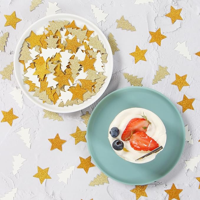 - Color : White Gold Tree Star Confetti