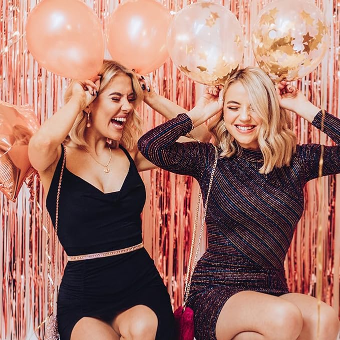10 Pack Foil Curtain Backdrop Rose Gold Metallic Tinsel Foil Fringe Curtains Photo Booth Props for Birthday Wedding Engagement Baby Shower Bachelorette Christmas Holiday Celebration Party Decorations