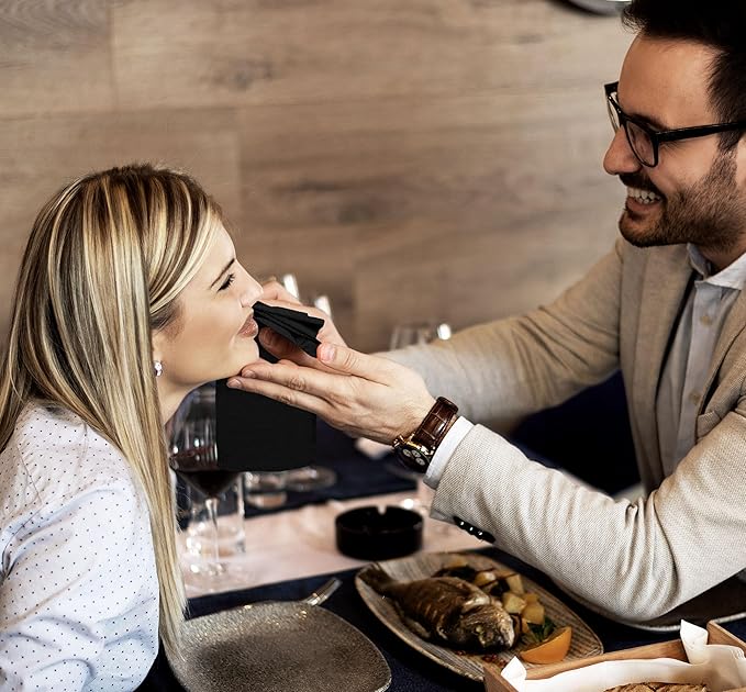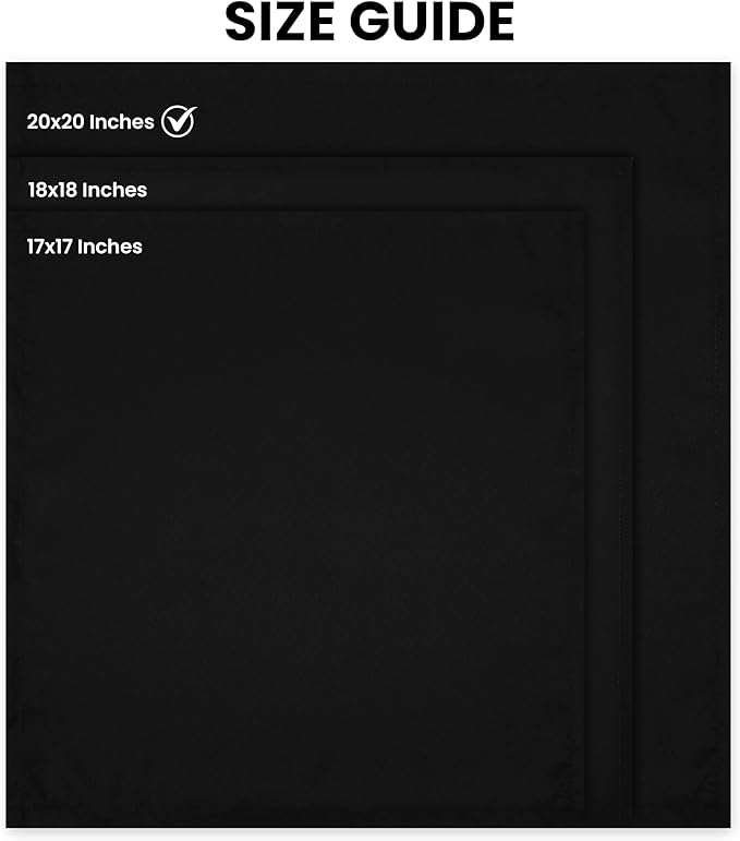 - 20x20 Inch Black Dinner Napkins - Available in a pack of 24, make dining an experience with our cloth napkins. Please refer to the images for the size guide and color variations on different displays