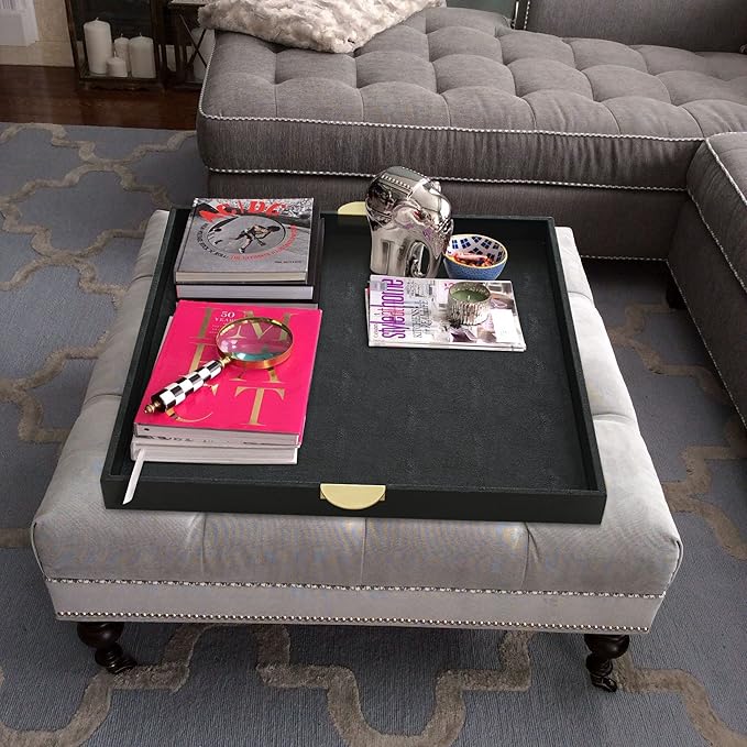 - This tray organizer is made of elegant faux leather, mdf, velvet, and the dimension: 23.6 x 23.6 x 2 inches.Perfect size for as serving tray, decorative tray, ottoman tray and more.