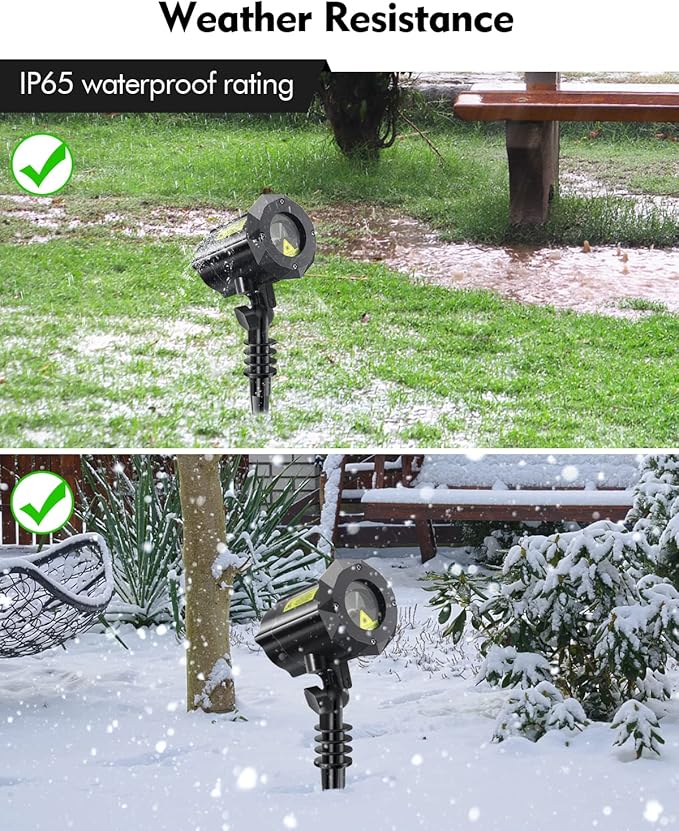 - Weather Resistance - Outdoor laser projector light has IP65 waterproof rating, ensuring the durability and longer service life. Don't worry about rain or snow.