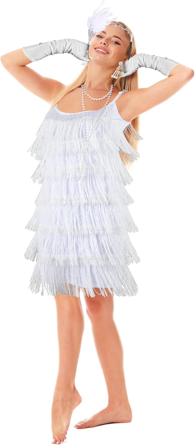 - Nice Combination: you will receive 1 piece of fringed flapper dress for women, 1 piece of flapper headband, 1 pair of vintage dangle earrings, 1 pair of long satin gloves, 1 piece of pearl necklace and 1 piece of plastic stick, charming and retro, ideal and nice flapper accessories for women to meet your wearing and dressing needs in festival and party