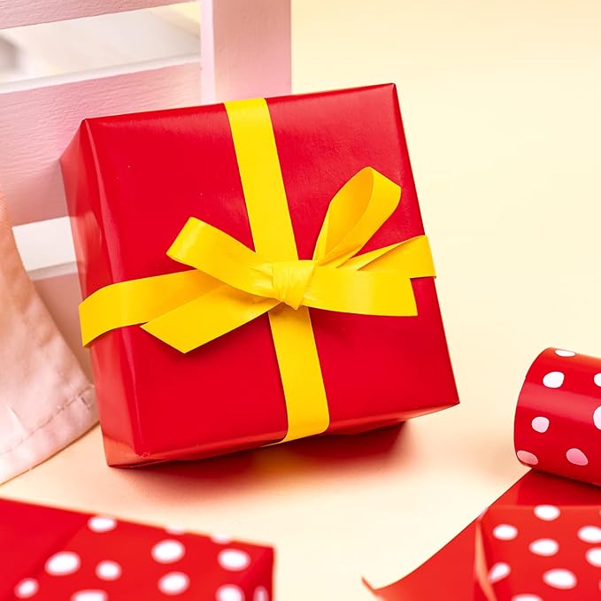 - REVERSIBLE: A solid red side and a red/white delicate polka dot side. Two different classic designs make beautiful and varied gift presentations easy