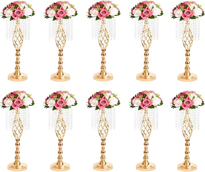 - Quality Materials: These metal flower stands consist of high-quality metal frames and crystal acrylic beads. The quality metal frames make these vases durable, anti-rust and firm. And the crystal bead strings add the elegance and romantic feel to any occasion or celebration.