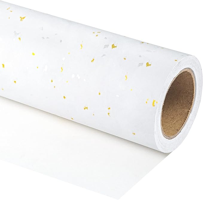 - Unique Design: This wrapping paper features a white solid color with gold and silver foil design. The minimalist yet eye-catching design exudes understated luxury, thereby making your presents more stylish, simple, and special.