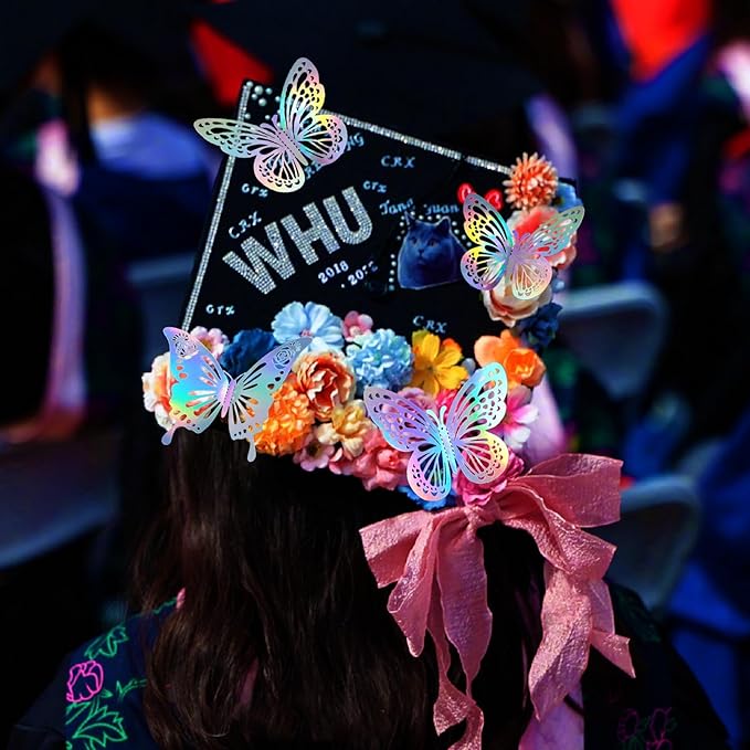 Laser Butterfly Wall Decor, 48Pcs 2 Styles 3 Sizes Butterflies for Birthday Cake Cupcake Toppers, 3D Paper Iridescent Sticker Graduation Grad Cap Decorations Baby Shower Girl Room Nursery Decals