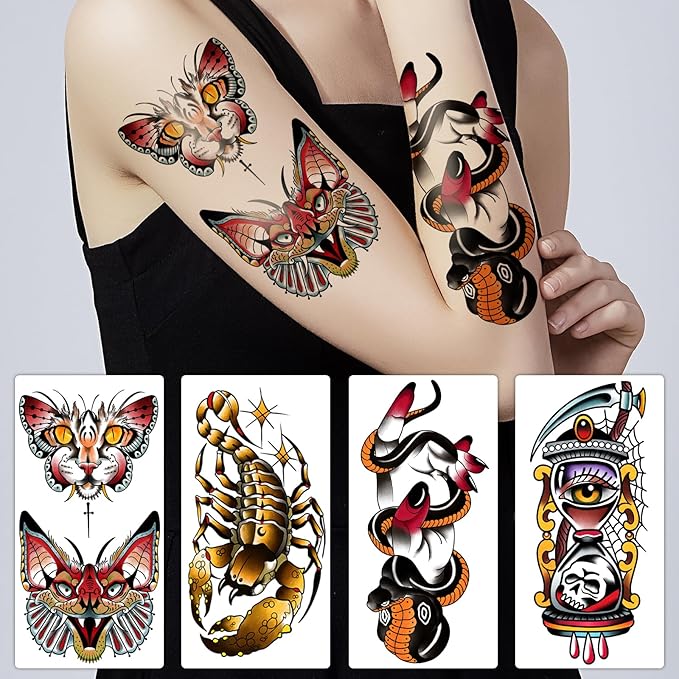 - ✔[SHOW PERSONALITY] If you think real tattoos are painful, temporary tattoos are your best choice. You can choose the Fake Tattoo pattern you like to paste on your body without causing you pain. The fake tattoo can show your personality and express your ideas
