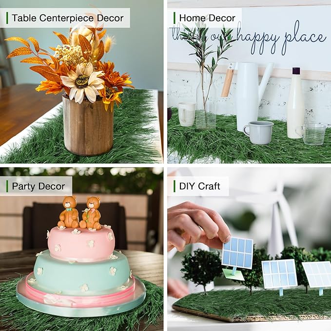 - Natural Looks Tablescape Decor: Faux green grass table runner is farmhouse and retro, shaggy and fluffy feels look like natural grass, DIY crafts for summer luau party decorations, golf themed, kids party, food decorating and staging
