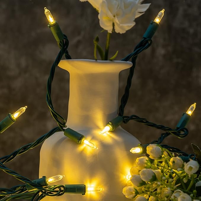 YULETIME Warm White LED Christmas Lights with Green Wire, 33 ft 100 Count UL Certified Commercial Grade Holiday String Light Set (Warm White - Green Wire)