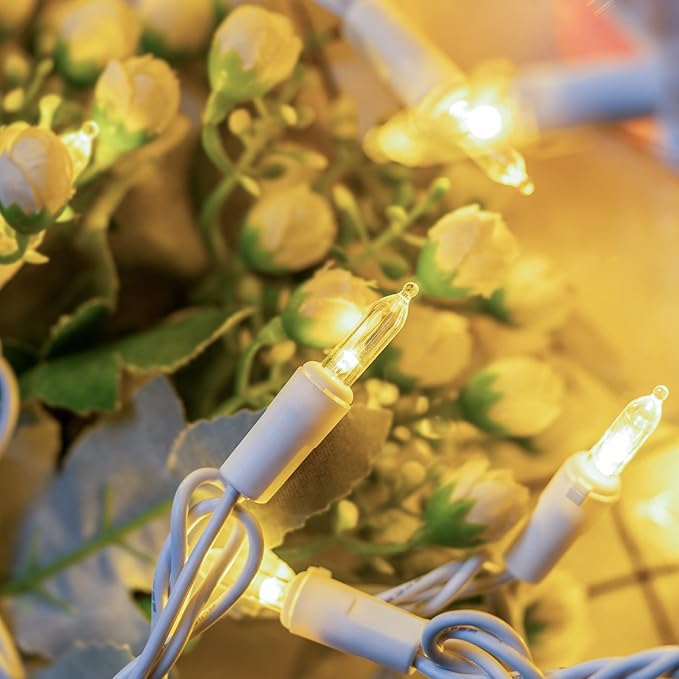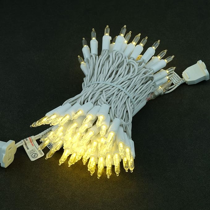 YULETIME Warm White LED Christmas Lights with White Wire, 33 ft 100 Count UL Certified Commercial Grade Holiday String Light Set (Warm White - White Wire)