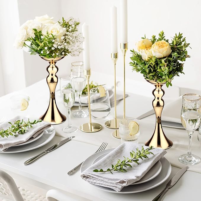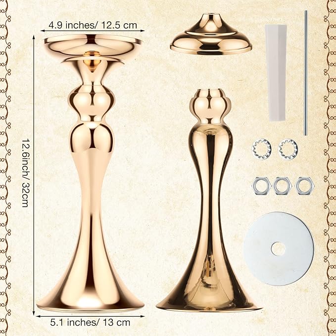 - Package Content: you will receive 16 pieces gold metal flower arrangements stand, the height is about 12.6 inches/ 32 cm, top diameter is about 4.9 inches/ 12.5 cm; Bottom diameter is about 5.1 inches/ 13 cm; Enough quantity for your use, it is your ideal wedding table centerpieces