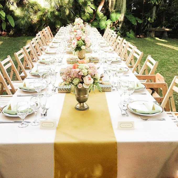 - 【Package Includes】:Each package includes 20 pieces of light gold satin table runners, each measuring 12 x 108 inches.