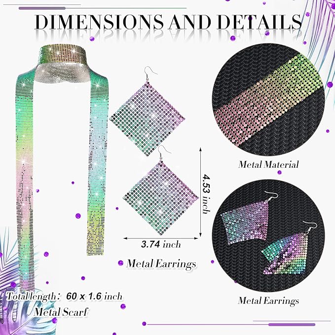 - Reliable and Sturdy: the glitter earring, scarf are mainly made of alloy, which are sturdy and solid, not easy fade or deform, also are lightweight and reusable; And the headband is made of elastic material with sequin, the disco outfits for women will offer you a good using experience, reliable material can be applied for a long time