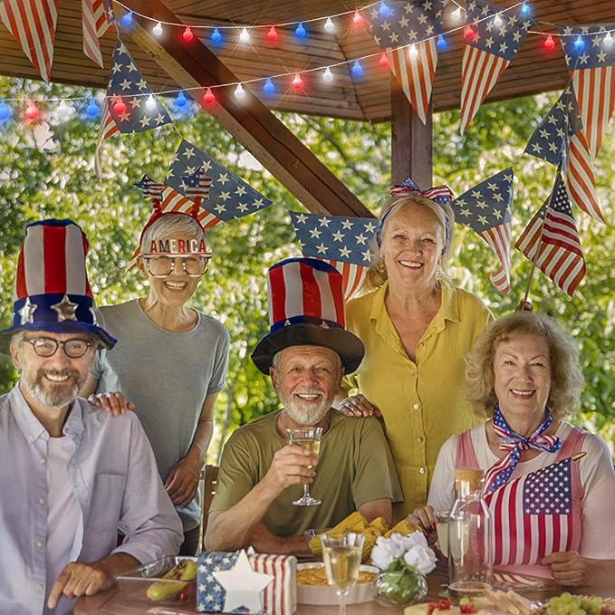 - PATRIOTIC CHRISTMAS DECORATIONS LIGHTS: Get in the patriotic mood with Red White & Blue Globe String Lights! By hanging strands of patriotic lights from a wall, door or fence, to display your patriotism.