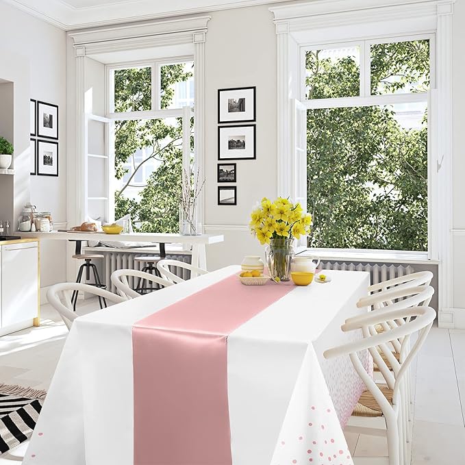 - What you will get: the package includes 6 pcs white and rose confetti dot plastic tablecloth and 6 pcs rose gold satin table runner, specific color as the picture shown, nice combination for you to use in daily life or important occasions enhancing the atmosphere for your event.
