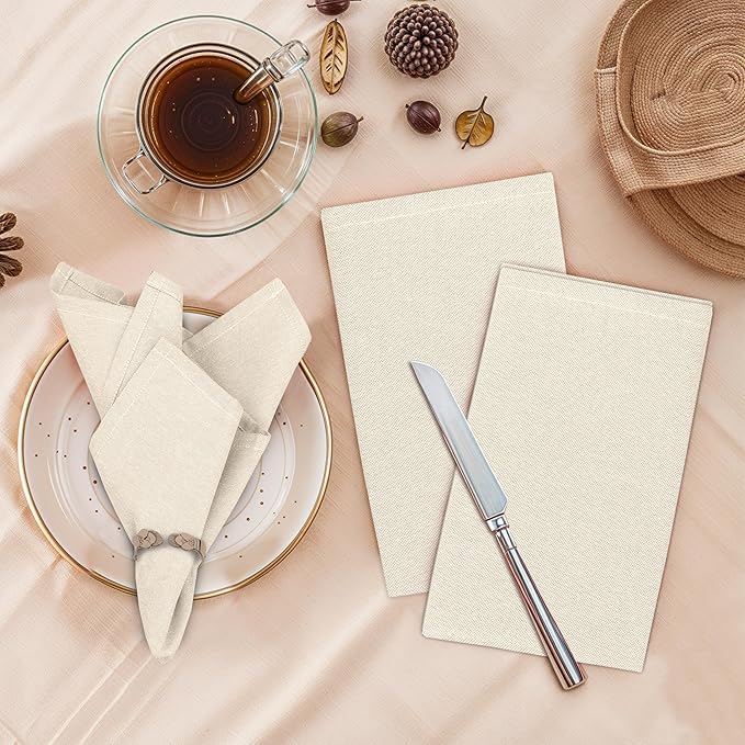 Ruvanti Cloth Napkins Set of 12, 18x18 Reusable Napkins Cloth Washable, Soft & Durable Table Napkin, Poly Cotton Fabric Dinner Napkins for Parties, Christmas, Thanksgiving, Weddings - Antique White