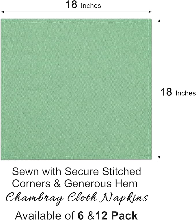 - Beauty Pack: Our Napkins Cloth is professionally cut, sewn with secure stitched corners, generous hem with value Pack of 12 measuring 18 by 18 inches. Dinner Napkins Brings lovely charm in dining experience.