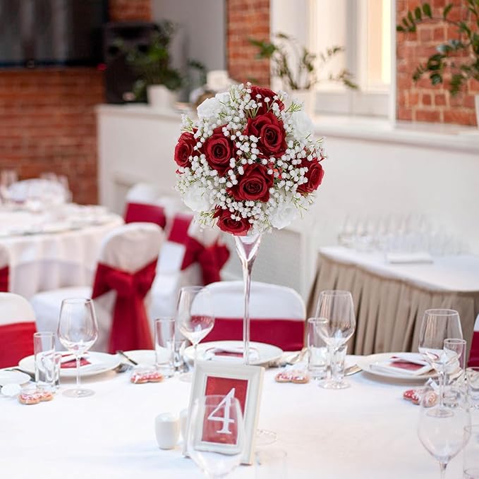 BLOSMON Fake Flowers Ball Wedding Centerpieces 2 Pcs Crimson Rose Babys Breath Artificial Flowers Center Pieces Decoration for Table Silk Kissing Floral Bouquet Arrangements for Home Party DIY Decor