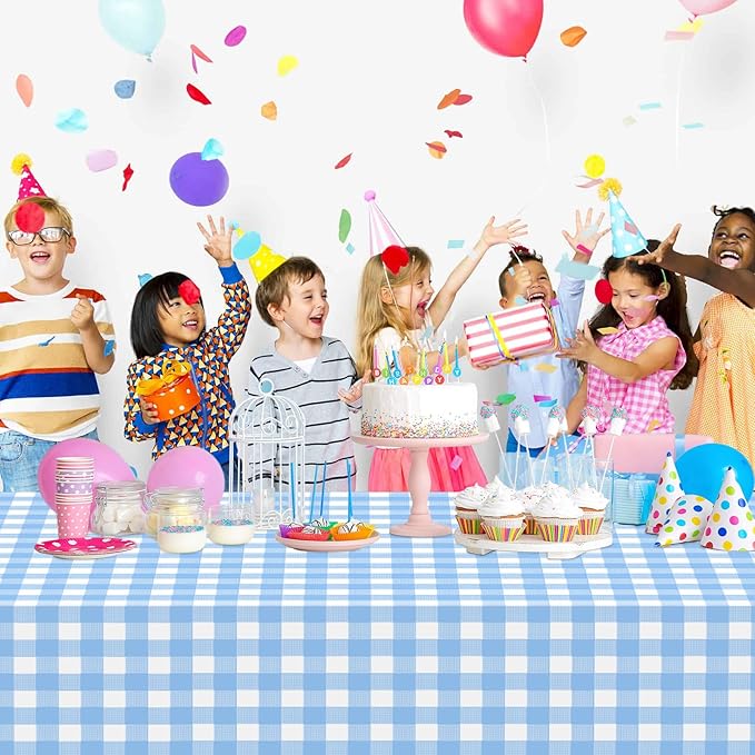 - Better Enjoyment: The high quality of light blue gingham disposable tablecloths protects your desktop, and the party theme is widely applied and easy to use, making you more relaxed and comfortable in the party without having to worry about the subsequent cleanup.