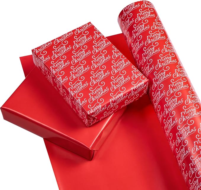 - Reversible Design: "Merry Christmas" lettering printed on one side, solid red printed on the reverse. Two different designs make unique and varied gift presentations easy.