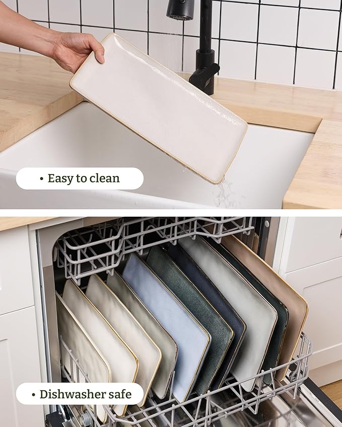 - Dishwasher and Microwave Safe: Famiware rectangle plates are made of premium stoneware. Each serving platters and trays is Dishwasher and microwave safe.