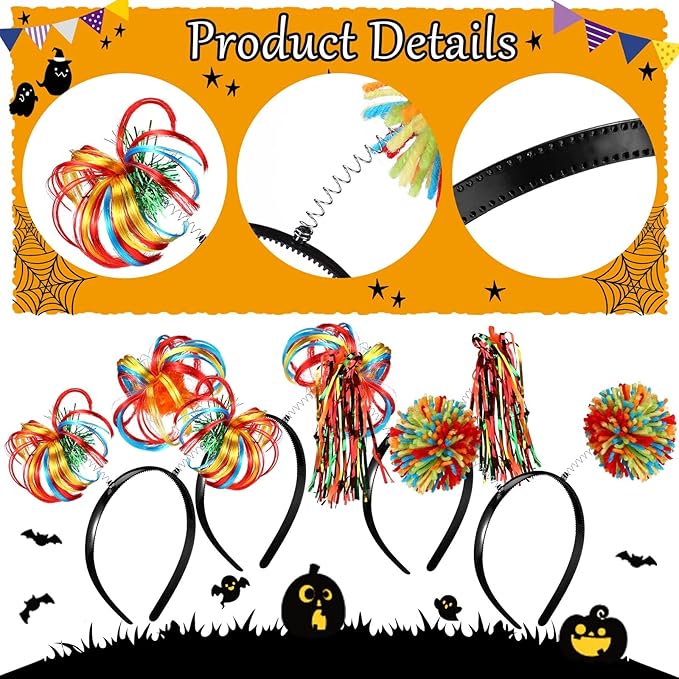 - Trendy and Attractive Design: the Halloween headbands are featuring with artificial quality synthetic fibers, elegant and novelty, realistic and nice workmanship make the hairband look more attractive; These pom-poms or fringe feather ponytails are attached to metal springs that bop around when you walk or jump up