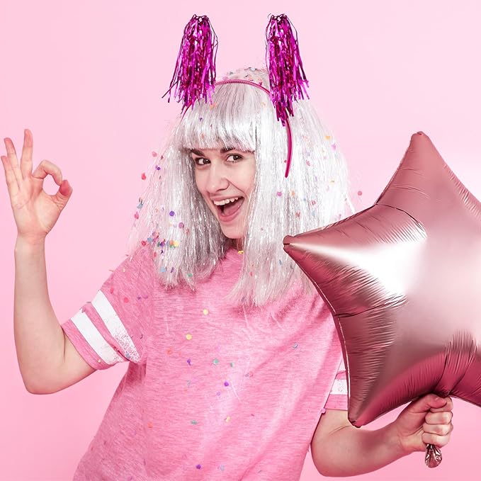 - Quality Material: these pink party hats are mainly made of spring, plastics, feathers, tassels, wig pieces, the proper combination is reliable and lightweight, not easy to break or fade, suitable for long time wearing, easy for you to use and carry