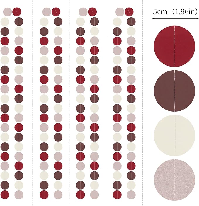 - 【Package including】The party garlands includes 4 x paper garlands, each backdrop bunting is 13 feet/ 4 meters long, total length is 52 feet/ 12 meters. Every Banner has 40pcs dots which the size is 1.97”
