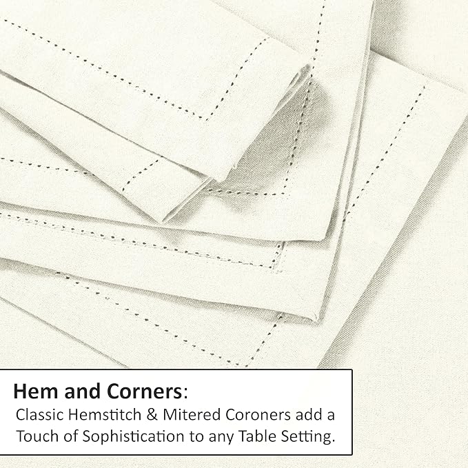 - Premium Material & Elegant Design: Cloth Napkins are Crafted from high-quality 20% Flax linen and 80% Cotton fabric known for their durability to ensure long-lasting use and luxurious feel. These are breathable & has ability to become softer over time. The Classic Hemstitch & Mitered Corners add a touch of sophistication to any table setting.