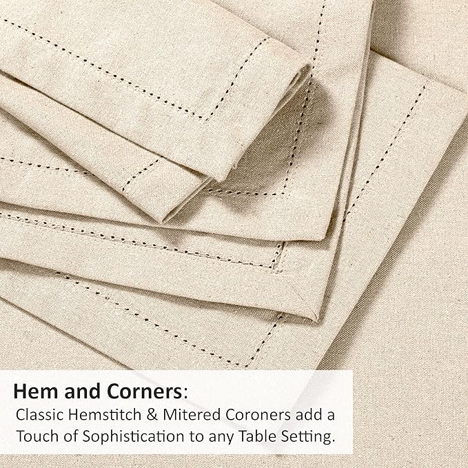 - Premium Material & Elegant Design: Cloth Napkins are Crafted from high-quality 20% Flax linen and 80% Cotton fabric known for their durability to ensure long-lasting use and luxurious feel. These are breathable & has ability to become softer over time. The Classic Hemstitch & Mitered Corners add a touch of sophistication to any table setting.