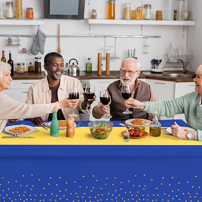 - What you will get: the package includes 6 pcs blue and gold confetti dot plastic tablecloth and 6 pcs gold satin table runner, specific color as the picture shown, nice combination for you to use in daily life or important occasions enhancing the atmosphere for your event.