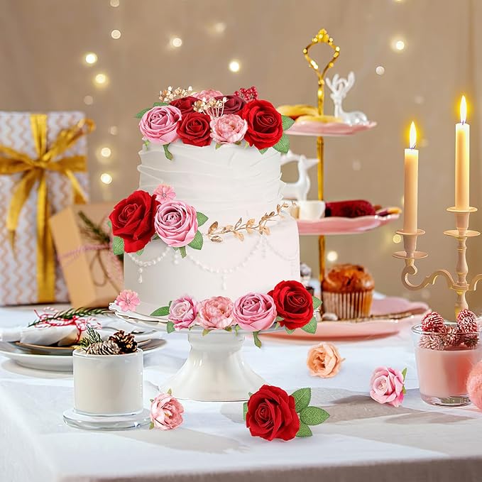 - Red Roses Artificial Flowers Set: This fake flowers set box consists of different types and colors of fake flowers. Handmade roses artificial flowers come with flower stems. These red roses artificial flowers for decoration can be used as wedding shower decorations, floral arrangement, Valentine's roses, wedding centerpieces for tables, baby shower home decorations