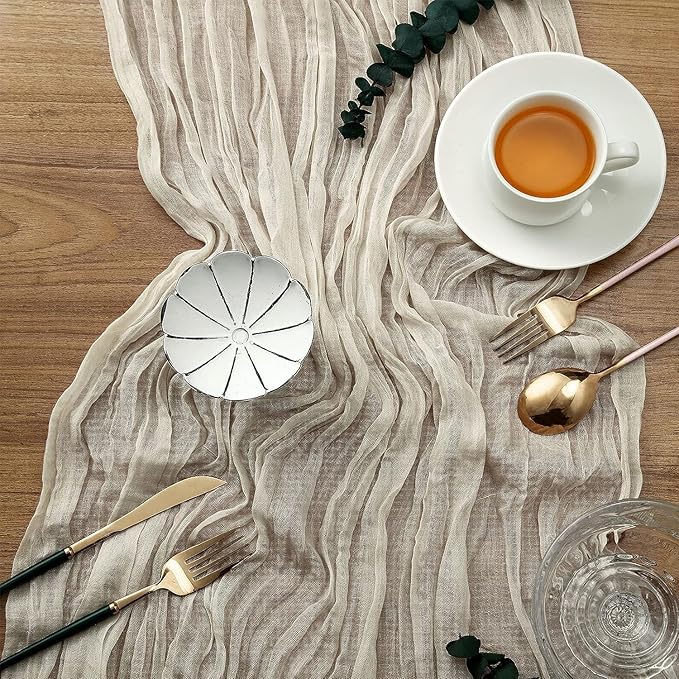 - Elegant Design: The Ivory cheesecloth table runner is designed with seamless wrinkle and fine workmanship, which is not only soft but also elegant. The Bohemian farmhouse style gauze table runner gives your party a rustic, retro, elegant bohemian vibe and impresses your guests. Lightweight and skin-friendly, the naturally draped, soft table runner has a delicate edge to hang gracefully over your banquet table.