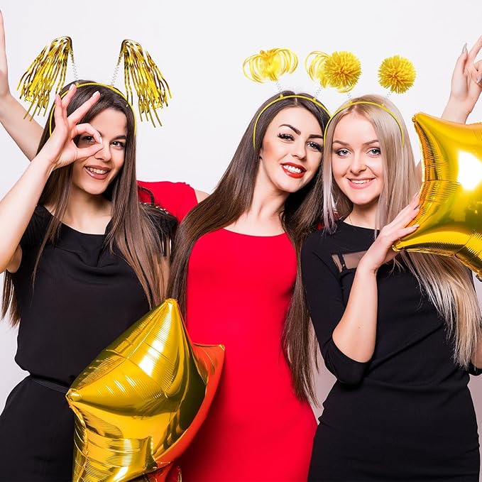 - Headband Set: package come with 3 pieces of pom pom headbands,3 pieces of feathers and ponytails headband, 3 pieces of tinsel wrapped ponytails headband, 3 pieces of tinsel headband, total 12 pcs; Enough quantity can meet your daily use, you can also share these headbands with your friend and others