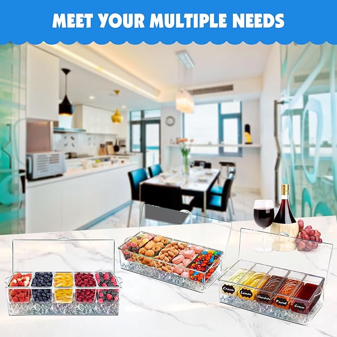 - 【PREMIUM MATERIALS】: Our ice chilled condiment serving set is crafted from 100% bpa-free, high-quality plastic, ensuring durability and safety. its shatterproof design guarantees worry-free usage.