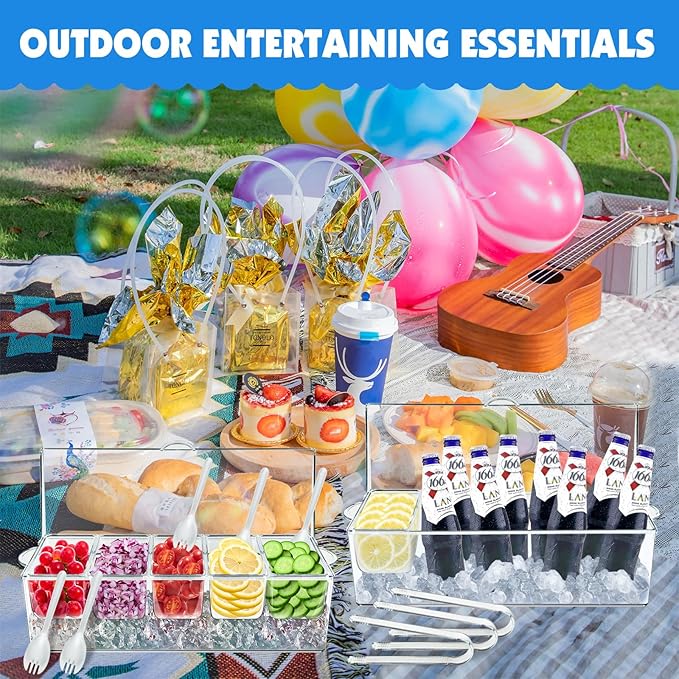 - 【KEEP FRESH & MULTI-PURPOSE】: From fruits and salads and sauces, our chilled condiment server keep fresh of your culinary delights. ideal for any occasion, this fruit tray with lid perfect for outdoor BBQ, picnic or outdoor party, holiday dining prep, spacious hinged lid that helps keep your food clean.
