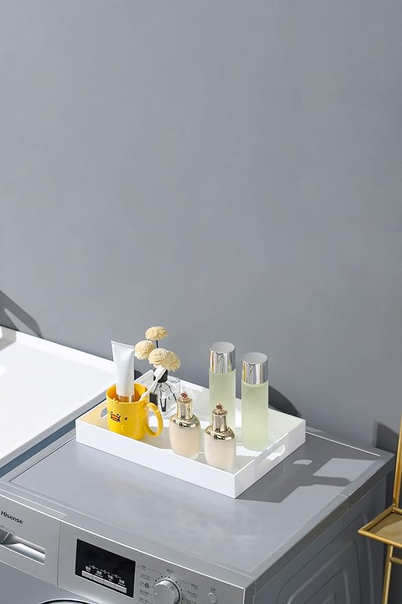 - MULTI-PURPOSE: This Clear Acrylic Serving Tray is a multi-purpose necessity for any home and an ideal decorative companion for your ottoman and coffee table. With handles on the side,the tray is easier for serving meals,snacks,offee,drinks,desserts,serving breakfast in bed, arranging toiletries and cosmetics on a bathroom vanity, storing remote controls in the living room, and turning your sofa into a cozy workstation.