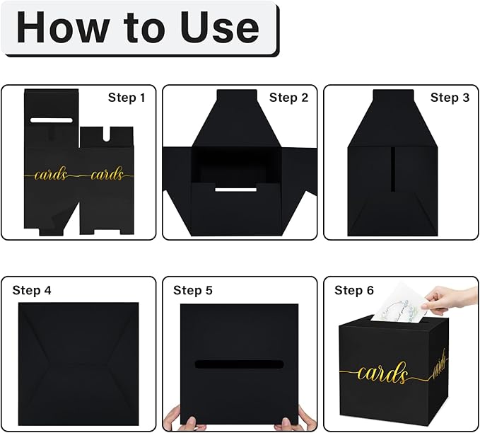 - 【Exquisite Design】The black card box is printed with elegant gold "card" characters, so that your friends can see its function at a glance. The party card box is suitable for any scenario. The exquisite design can also be the icing on the cake for your party. Let the black box add more splendor to your graduation or birthday party and more!