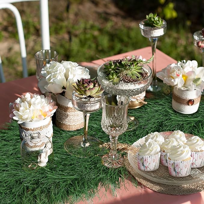 - High Quality Greenery Table Decor: Our green thatch table runner is PE material, with rubber backing, safe flame retardant, waterproof, anti uv, anti slip, provide a long lifespan