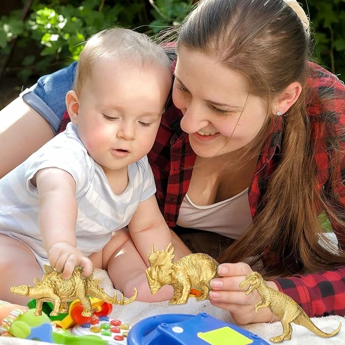 - 【Special Home Decor and Gift】These dinosaur animal toys can easily be put anywhere in the house to provide different uses. Place them in succulent plants to create a small landscape of a wild jungle, or place them in a bathroom to be the prizes for kids potty training. End of year student gifts from teacher. The gold design of the dinosaur figures adds a special metallic touch to the room. The best gifts for kids and adults who are dinosaur collectors and dinosaur lovers.