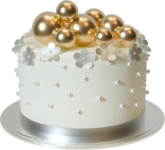 - Package includes: 20 pcs gold ball cake decorations. The diameter of these ball cake toppers are 0.79 inch/ 2 cm, 0.98 inch/ 2.5 cm, 1.18 inches/ 3 cm, 1.57 inches/ 4 cm, 5 pieces of each size.