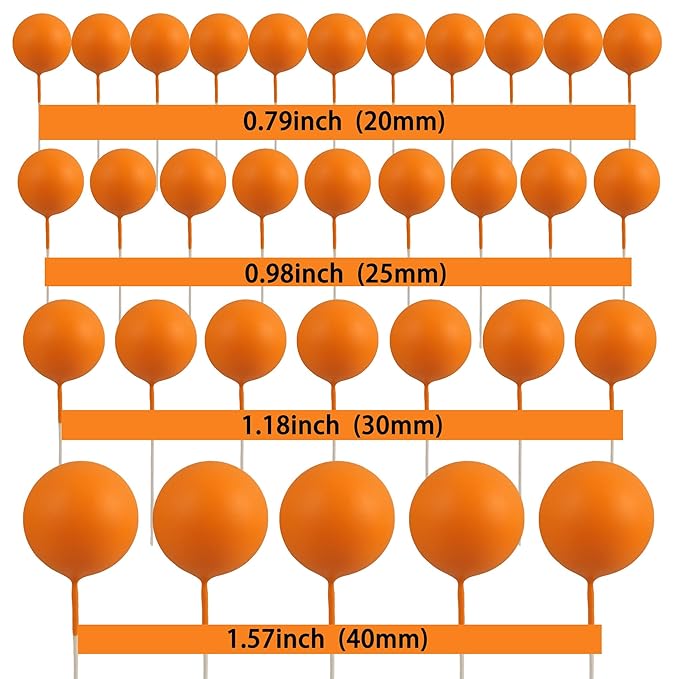 - 💗💗Package included: 30Pcs Ball Cupcake Toppers with Different Sizes(2.5cm * 18Pcs, 3cm * 6Pcs, 4cm 3Pcs, 5cm * 3Pcs). They are Orange Colors as Photos Showed. The combination of size and color will decorate your cake more layered.