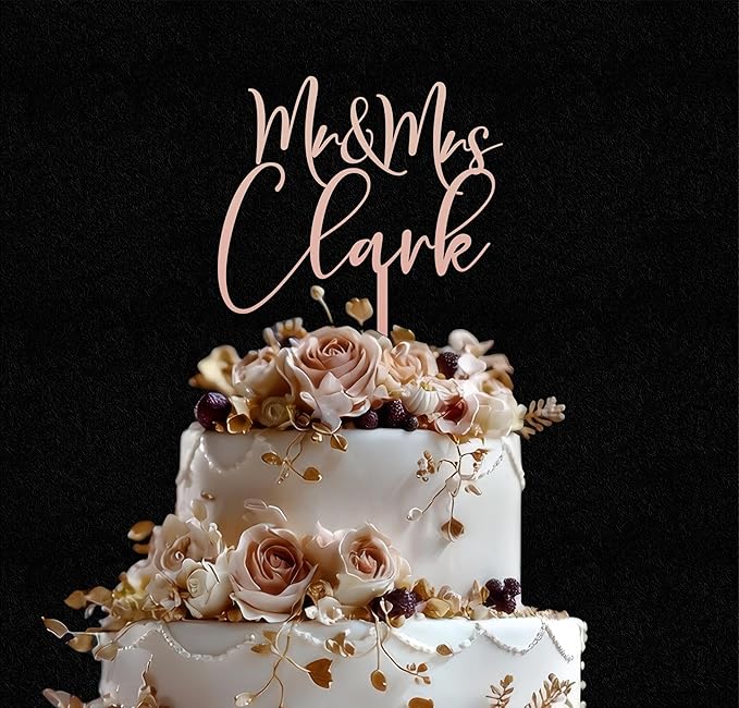 Personalized Gold Wedding Cake Topper – Custom Rustic Mr & Mrs, Anniversary or Any Wording